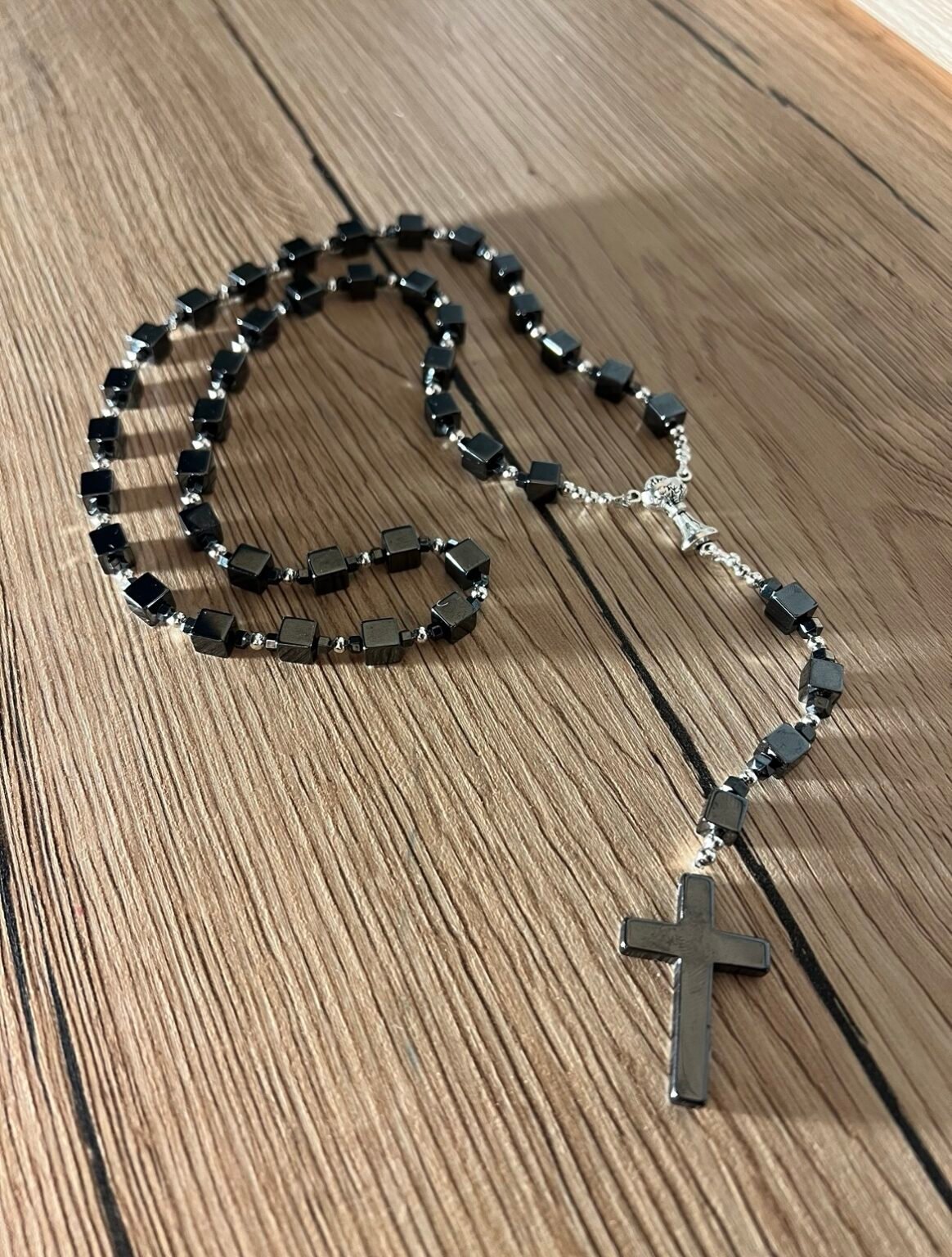 Vyriškas rožančius iš kvadratinių hematito karoliukų