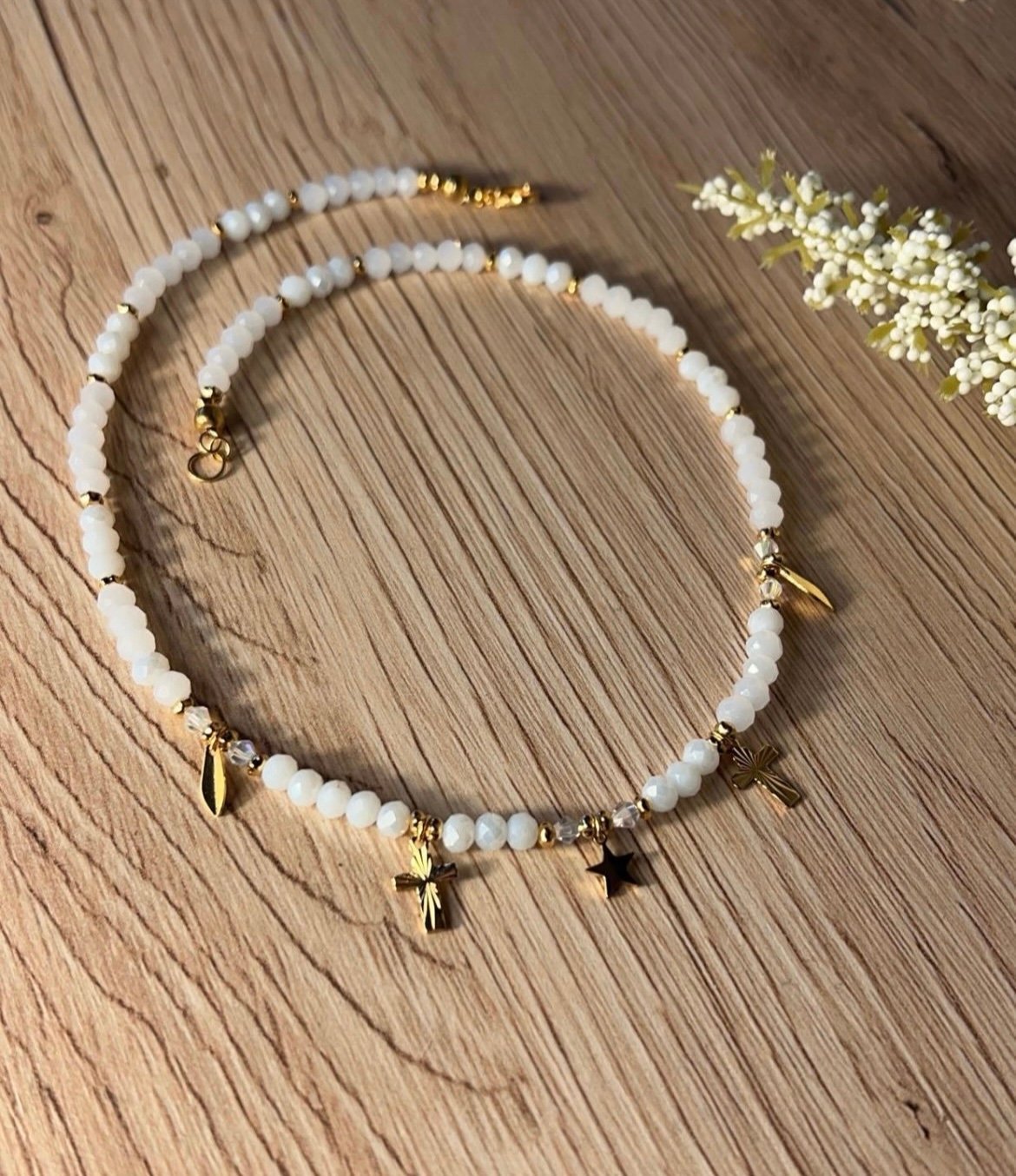 Rankų darbo vėrinys iš stiklo karoliukų ir aukštos kokybės detalių.
