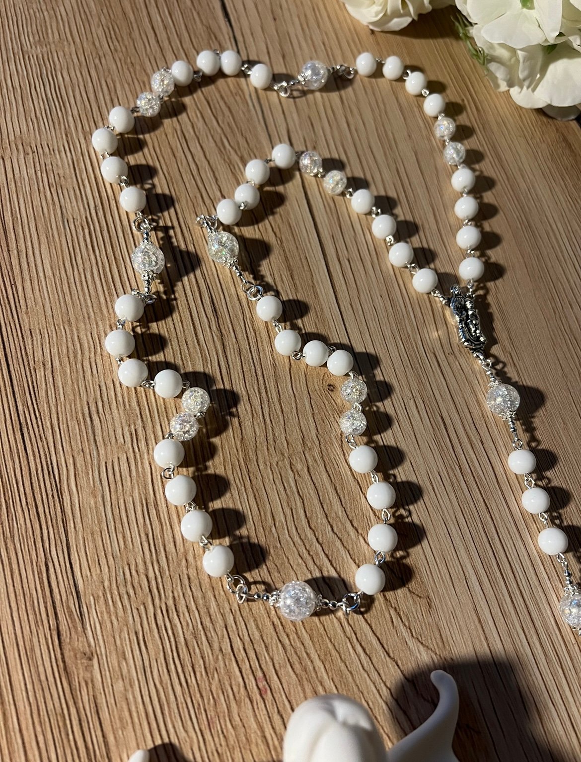 Onikso ir perlamutrinio kalnų krištolo rožančius